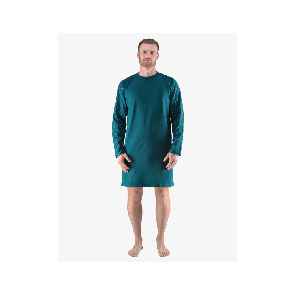 košile noční pánská dlouhý rukáv, šité, s potiskem značky GINA, kód 79167. Barva: petrolejová aqua, Velikost: M, Složení: 100% Bavlna Pánské noční košile z jemného úpletu Vám poskytne jedinečné pohodlí během spánku. Nabízme oblíbenou barvu a decentní potisk rukávů.. Kolekce: Pyžama 2023Doplňkové parametry