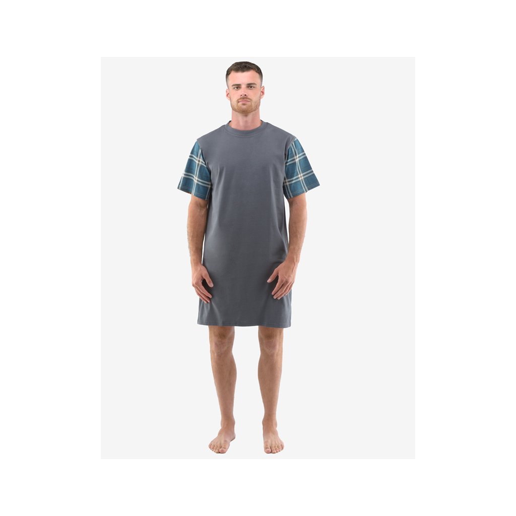 košile noční pánská krátký rukáv, šité, s potiskem značky GINA, kód 79146. Barva: tm. šedá petrolejová, Velikost: L, Složení: 100% BavlnaZákladem kvalitního spánku je vaše pohodlí, ke kterému vám pomůže i pohodlné noční prádlo. Naše pánská noční košile s krátkým rukávem je ideální volbou pro každého milovníka svobody a kvalitních materiálů. Volný střih nikde netáhne ani neškrtí a materiál ze 100% bavlny vám zajistí pohodlí po celou noc. Bude se vám v ní spát doslova jako v bavlnce.. Kolekce: Pyžama 2022Doplňkové parametry