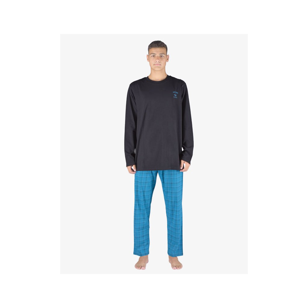 pyžamo dlouhé pánské, šité, s potiskem značky GINA, kód 79145. Barva: petrolejová černá, Velikost: L, Složení: 100% BavlnaPánské klasické pyžamo volného střihu z jemného úpletu Vám poskytne pohodlí během spánku. Triko s dlouhými rukávy má na hrudi drobný potisk, kalhoty jsou potištěny oblíbeným vzorem káro.. Kolekce: Pyžama 2023Doplňkové parametry