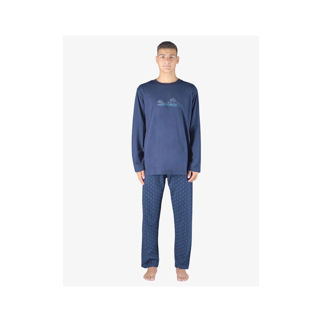 GINA pánské pyžamo dlouhé pánské, šité, s potiskem Pyžama 2023 79151P