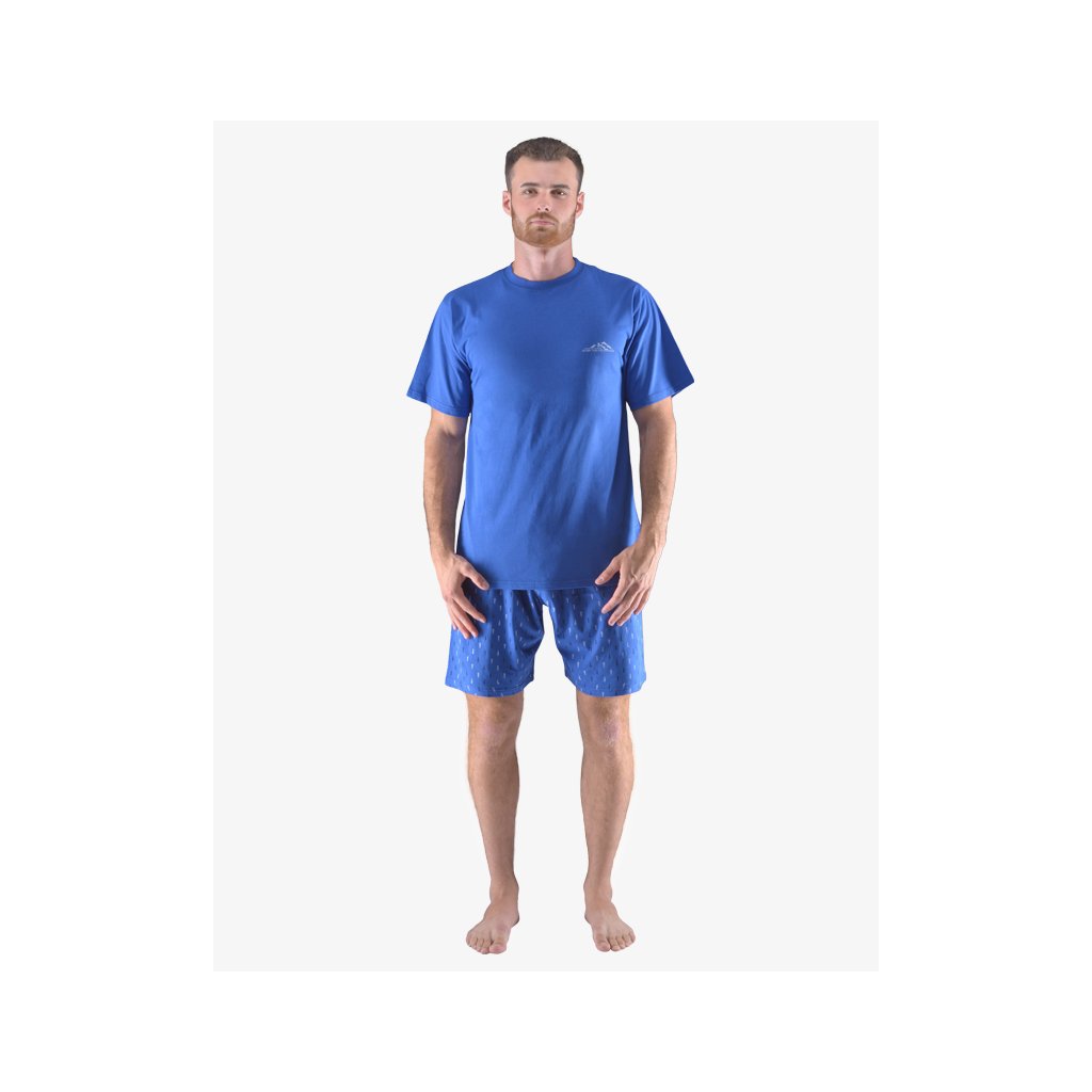 pyžamo krátké pánské, šité, s potiskem značky GINA, kód 79164. Barva: modrá pomnenková, Velikost: L, Složení: 100% BavlnaPánské pyžamo volného střihu z jemného úpletu Vám poskytne pohodlí během spánku. Krátké kalhoty jsou potištěny drobným vzorem, triko s krátkými rukávy zdobí menší potisk na hrudi.. Kolekce: Pyžama 2023Doplňkové parametry