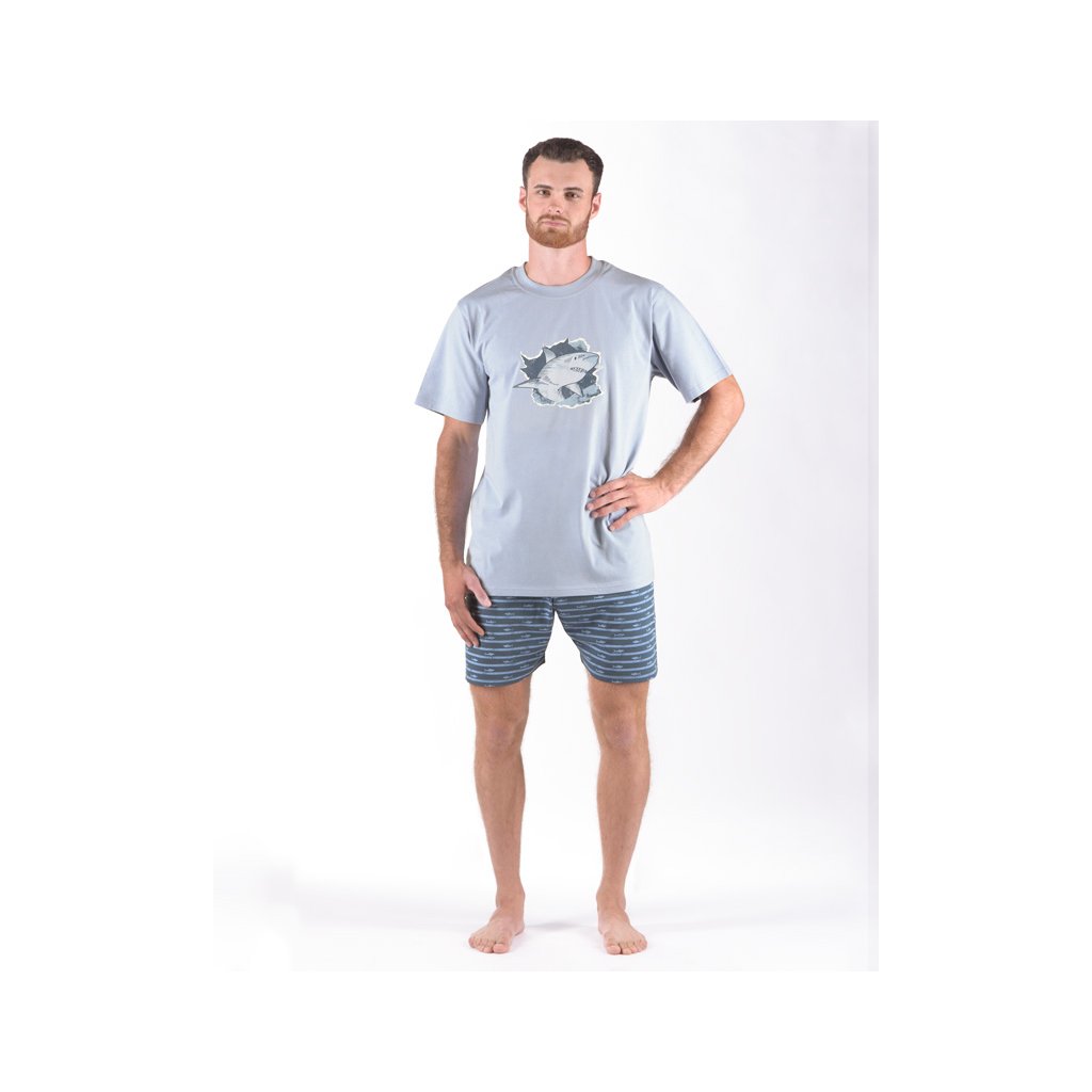 pyžamo krátké pánské, šité, s potiskem značky GINA, kód 79170. Barva: pomnenková šedomodrá, Velikost: L, Složení: 100% BavlnaPánské pyžamo volného střihu z jemného úpletu Vám poskytne pohodlí během spánku. Krátké kalhoty s potiskem doplňuje triko s velkým potiskem na hrudi a krátkými rukávy.. Kolekce: Pyžama 2024Doplňkové parametry