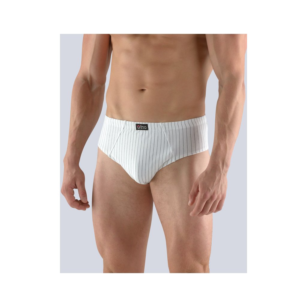 slipy se širším bokem, širší bok, šité značky GINA, kód 71093. Barva: bílá tm. šedá, Velikost: 50/52, Složení: 92% Bavlna 8% ElastanSlipy se širším bokem, pánské šité prádlo. V pasovém kraji je zašitá širší pruženka. V nohavičkách je zašitá úzká pruženka. Slipy jsou vyrobené z materiálu s vypletenými proužky.Materiál je vyroben z bavlny, která je doplněna elastanem. Úplet je vhodný pro všechny, kteří hledají přírodní materiály. Elastan přidává materiálu pružnost a zlepšuje jeho tvarovou stálost. Prádlo z tohoto materiálu je vhodné pro každodenní nošení..Doplňkové parametry