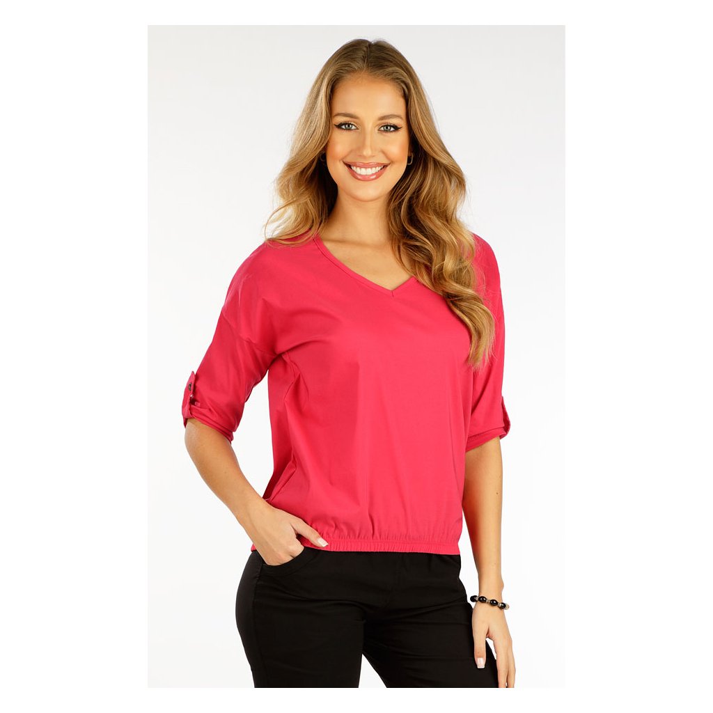 Halenka volného střihu s výstřihem do V. Tvarovaná délka halenky s nabráním do gumy. Rukáv s ozdobným detailem. Materiál s vysokým podílem bavlny, která představuje záruku prodyšnosti a vysoce komfortního pocitu. Lehký a pružný materiál. 70% Bavlna + 26% Polyamid + 4% Elastan 320 tmavě růžová S, M, L, XLDoplňkové parametry