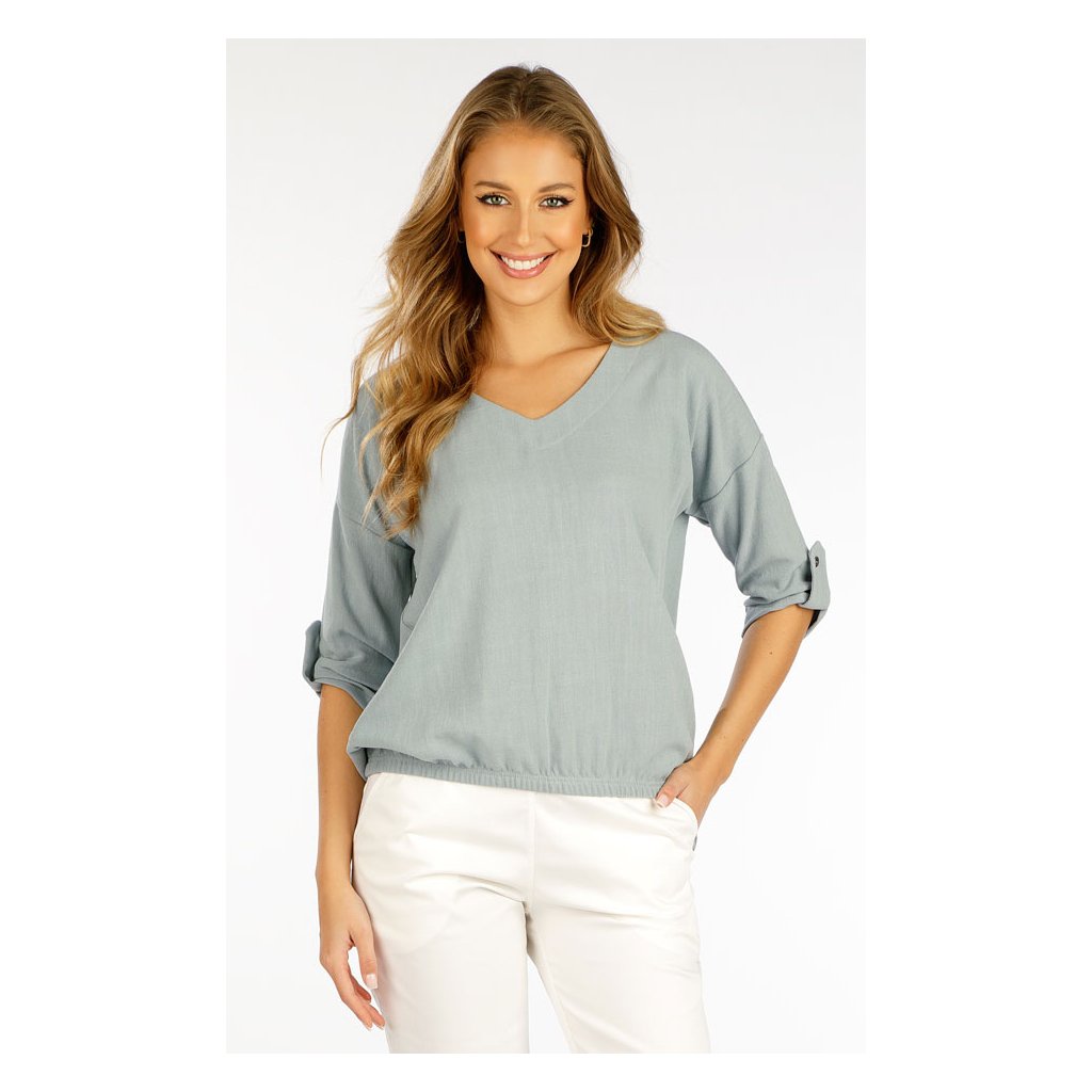 Halenka volného střihu s výstřihem do V. Tvarovaná délka halenky s nabráním do gumy. Rukáv s ozdobným detailem. Materiálové složení zaručuje dokonalou prodyšnost, měkkost a příjemný pocit při nošení. Velmi praktický a pohodlný kousek v moderním střihu, který skvěle doladí Váš outfit. 70% Viskóza + 30% Len 612 světle mentolová S, M, L, XLDiskuze