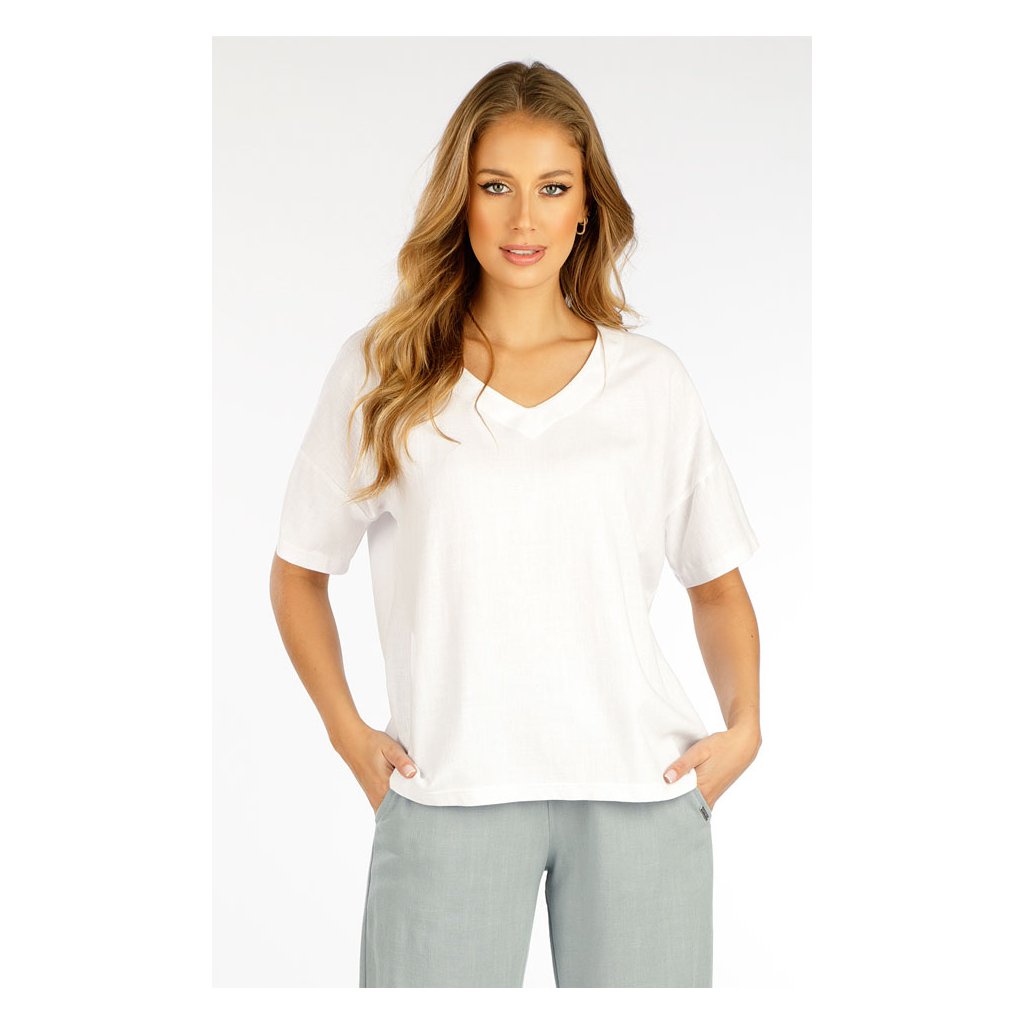 Halenka volného střihu s výstřihem do V. Materiálové složení zaručuje dokonalou prodyšnost, měkkost a příjemný pocit při nošení. Velmi praktický a pohodlný kousek v moderním střihu, který skvěle doladí Váš outfit. 70% Viskóza + 30% Len 100 bílá S, M, L, XLDoplňkové parametry