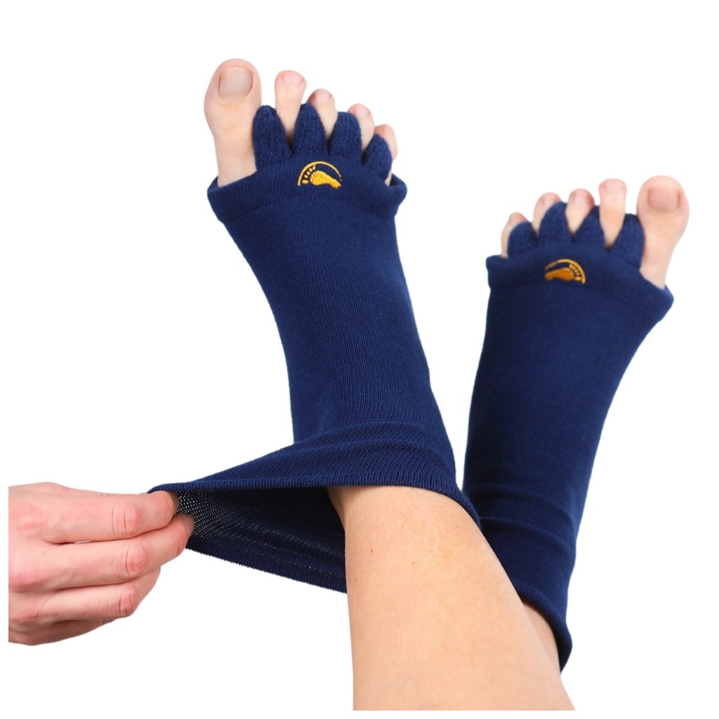 EXTRA PRUŽNÉ Adjustační ponožky® S VOLNÝM LEMEM pro oteklé nohy slouží jako terapeutická pomůcka pro vbočený palec, kladívkové prsty, křivé a stísněné prsty, časté křeče v prstech, unavené a bolavé nohy, otoky nohou, patní ostruhu, kuří oka a jiné problémy nohou. Díky speciálním meziprstním oddělovačům se zrychluje krevní oběh a tím se urychluje i regenerace nohou. Adjustační ponožky pomáhají tím, že udržují nohy a prsty mobilní, ohebné, a tím méně bolestivé.Doplňkové parametry