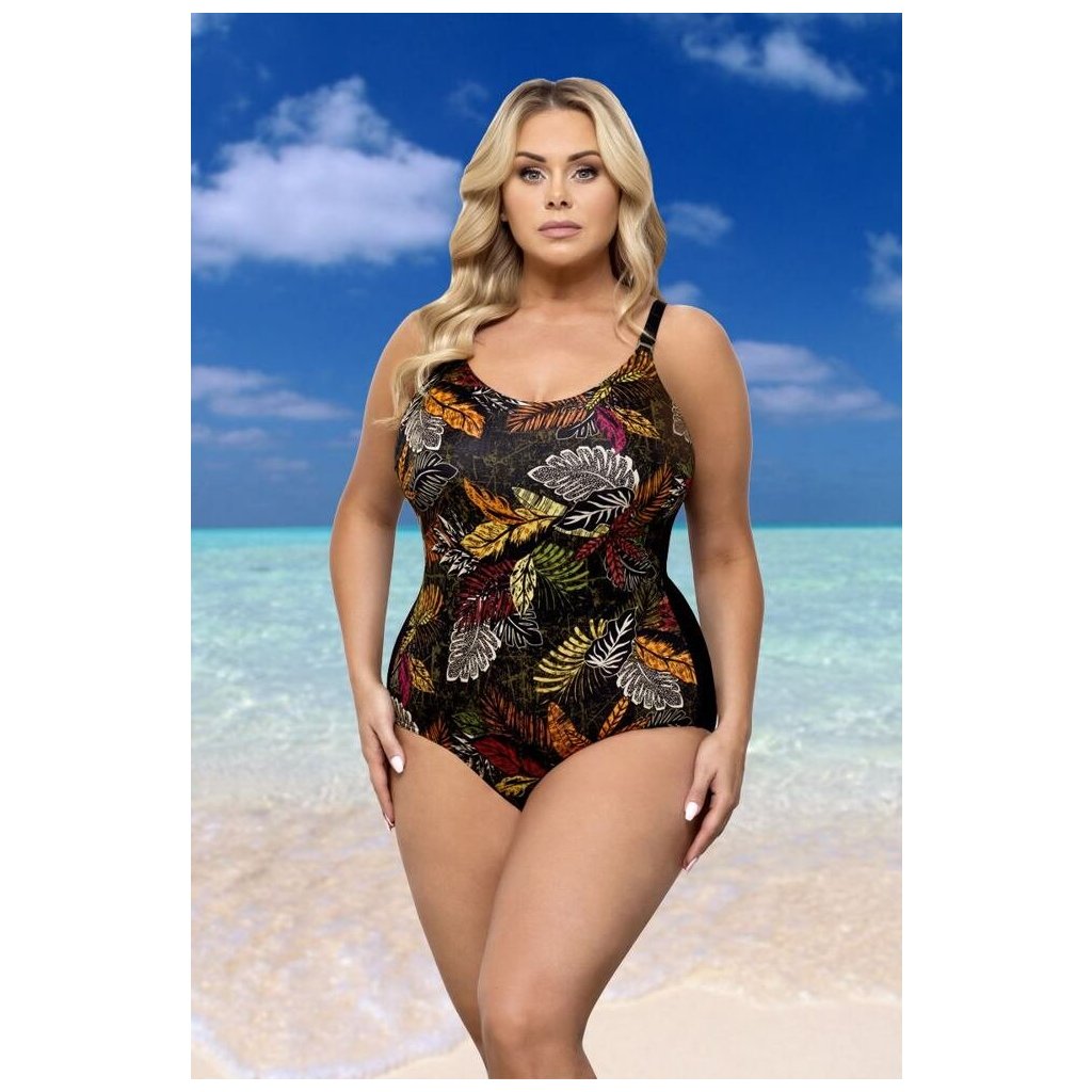 Černé jednodílné plavky se zapínají na zádech a hodí se i pro plnoštíhlé ženy.