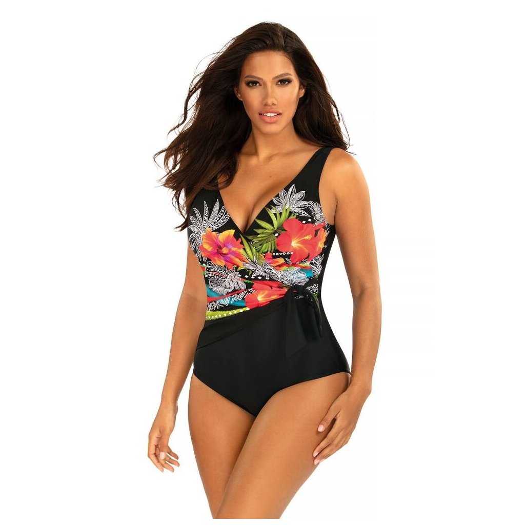 Jednodílné plavky Bali mají zeštíhlující střih s krásným květinovým vzorem a zavinovacím střihem.