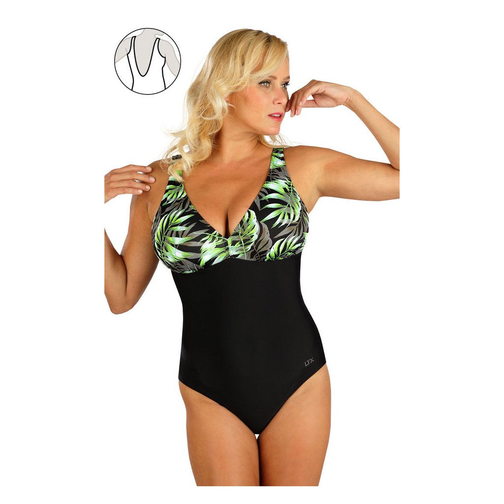 Vrchní díl podšitý s molitanovou výztuží. Vypodložená ramínka. Řasení. Střih: J33 80% Polyamid + 20% Elastan/ Lycra Xtra Life Tisk + černá. 40, 42, 44, 46, 48, 50, 52, 54Doplňkové parametry