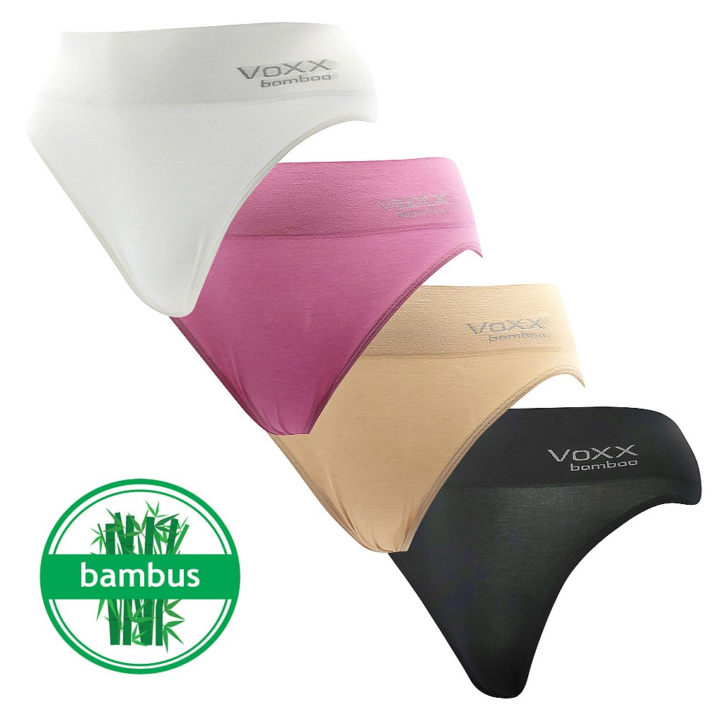 Dámské vyšší klasické kalhotky VoXX® BS-002 z kolekce Bamboo Seamless underwear jsou velmi příjemné a pohodlné kalhotky vyrobené z kvalitního a silného úpletu. Hladké kalhotky mají v pase zvýšený, zdvojený, žebrovaný a bezešvý lem, klasickou boční výšku, gumičky mají založené kolem nohaviček a nepřijdou tak do kontaktu s pokožkou. Bambus rychle absorbuje a odvádí vlhkost, je rychleschnoucí. Vlákno bambusové viskózy má dlouho životnost, je hebké a příjemné na omak, odolné proti otěru a je lesklé i po opakovaném praní. Bambusová vlákna jsou přirozeně antibakteriální, a navíc mají antistatické vlastnosti. Ideální pro alergiky, na sport i běžné celodenní nošení