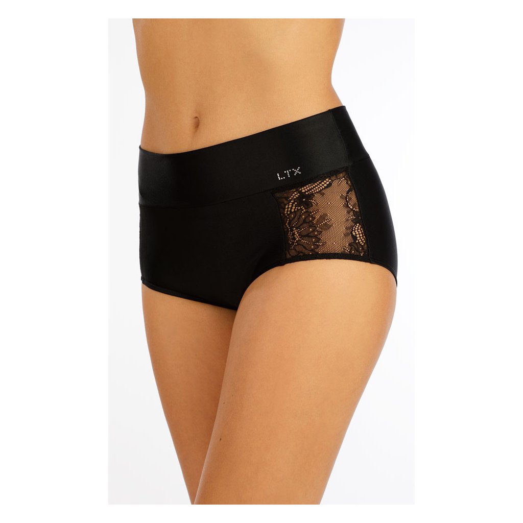 V pase široký pružný lem bez gumy. Nohavičky s příjemnou úzkou gumičkou. Extra vysoký střih z velmi pružného a jemného hladkého materiálu s krajkovými boky pro neodolatelný a luxusní vzhled. 80% Polyamid + 20% Elastan/ 90% Polyamid + 10% Elastan 901 černá S, M, L, XLDiskuze