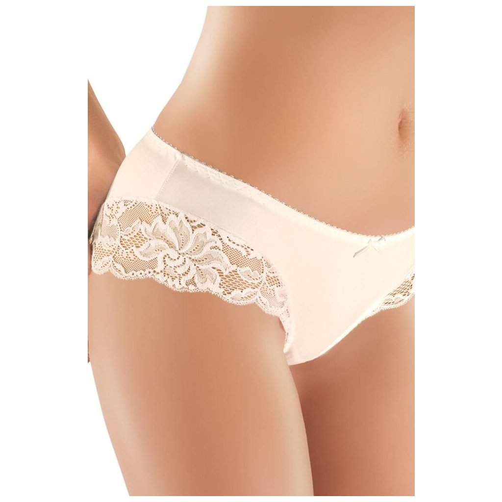 Kvalitní dámské kalhotky s ozdobnou krajkou na bocích v smetanové barvě.Doplňkové parametry