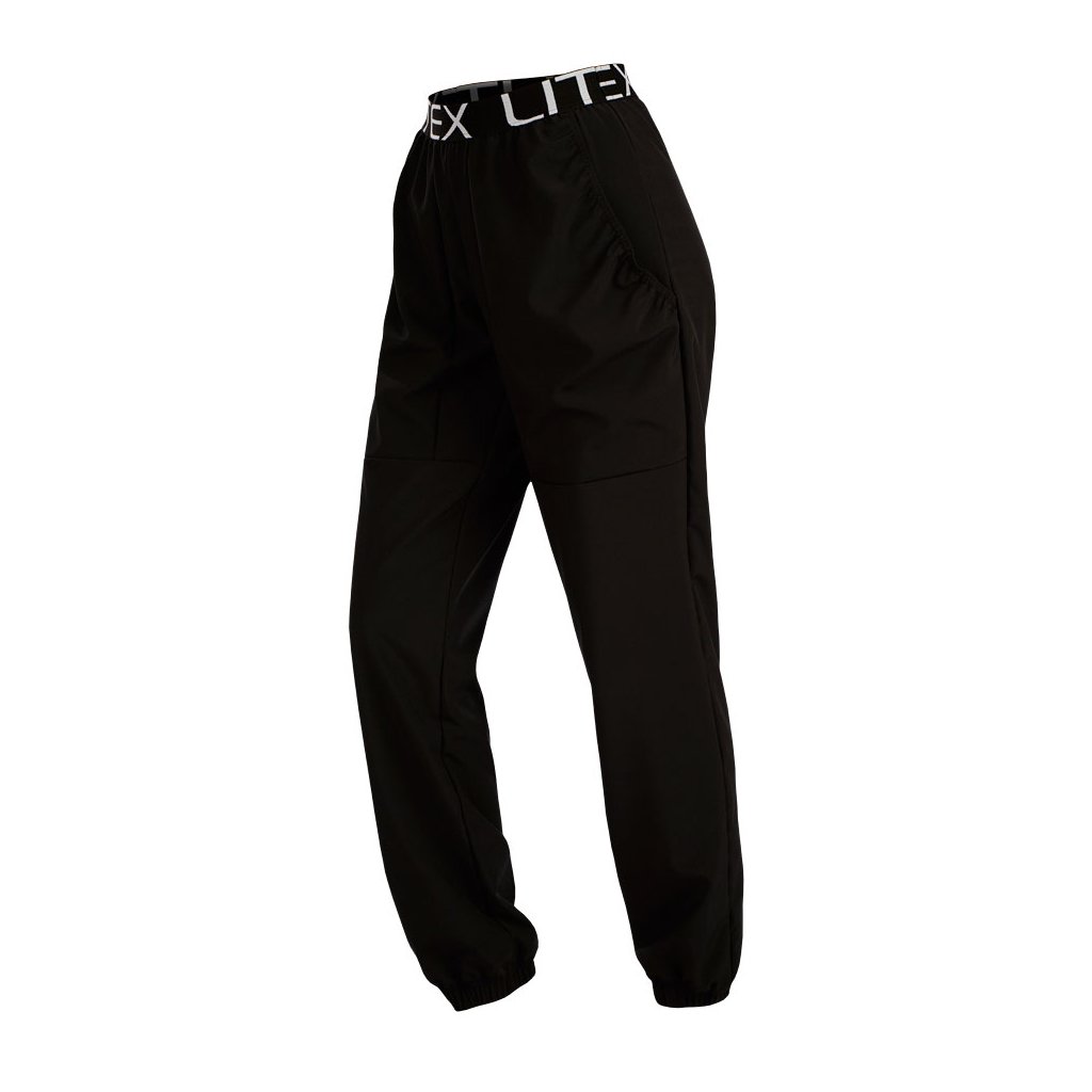 V pase vytkávaná guma s logem. Efektní řasení na předních kapsách. V délce nohavic nabrání do pružného lemu. Materiálové složení zaručuje dokonalou lehkost a volnost pohybu. Tyto kalhoty jsou vhodné pro sport a volný čas. Dokonale doladí Váš outfit. 94% Polyester + 6% Elastan 901 černá S, M, L, XLDoplňkové parametry