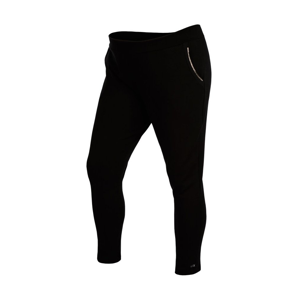 Pohodlný střih s elastickým pasem a délkou ke kotníkům. Na předním díle kapsy s ozdobnými kamínky. Luxusní materiálové složení se vyznačuje zejména svou měkkostí, splývavostí a pružností. Stylový základ volnočasových, elegantních oufitů, který si díky své všestranné kombinovatelnosti zamilujete. Nabízíme ve větších velikostech. 52% Modal + 41% Polyester + 7% Elastan 901 černá XL, XXL, XXXLDiskuze