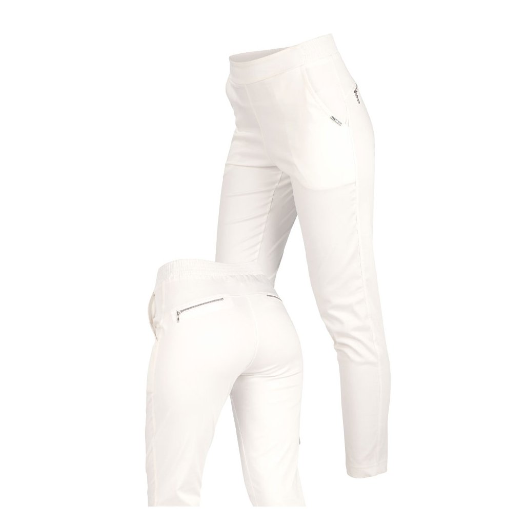 Délka ke kotníkům. Vyšší sed s elastickým pasem a bočními kapsami. Na zadním díle ozdobné falešné kapsy se zipy. Přestože jsou bílé, neprosvítají. Materiál příjemný na omak zaručuje maximální komfort při nošení. Vzhledem k barvě velmi dobře kombinovatelný praktický kousek. 58% Bavlna + 40% Viskóza + 2% Elastan 100 bílá S, M, L, XLDoplňkové parametry