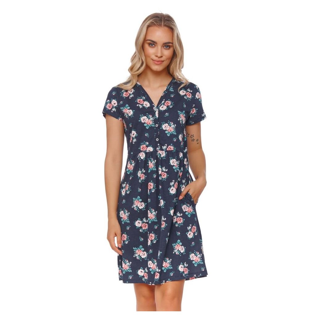 Košilka Diana má krásný vzor s růžemi, tmavě modrou barvu a pohodlný volnější střih.Doplňkové parametry