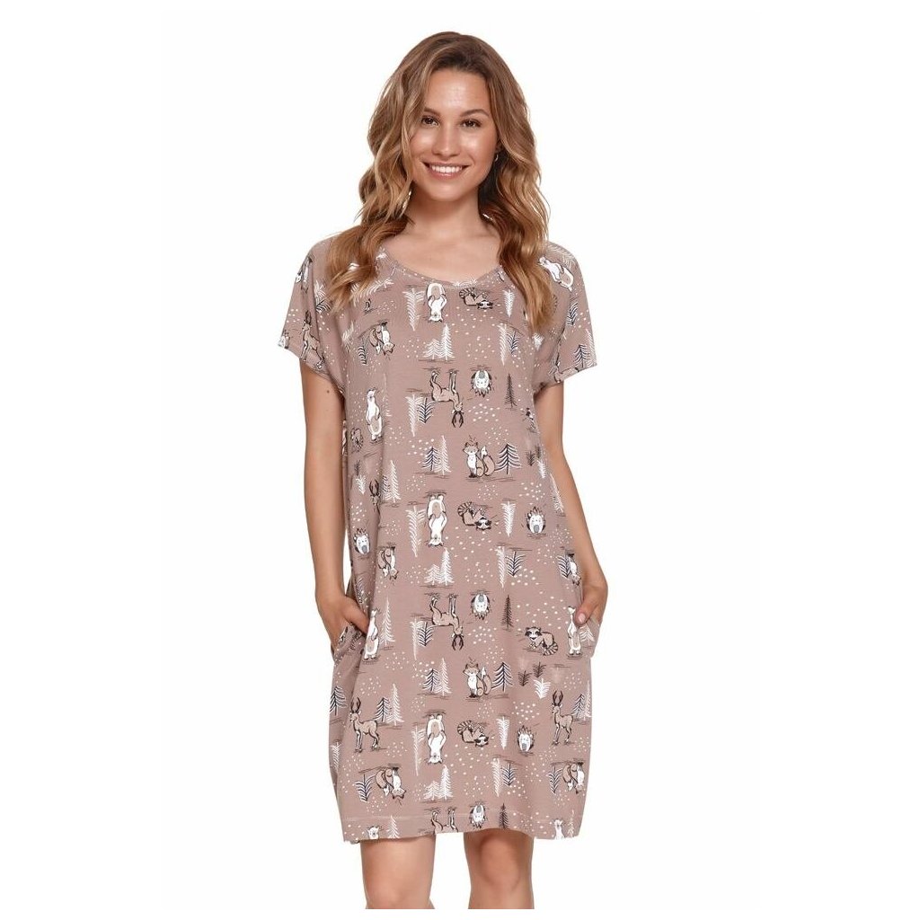Kojicí noční košilka Mary hnědá s lesními zvířaty