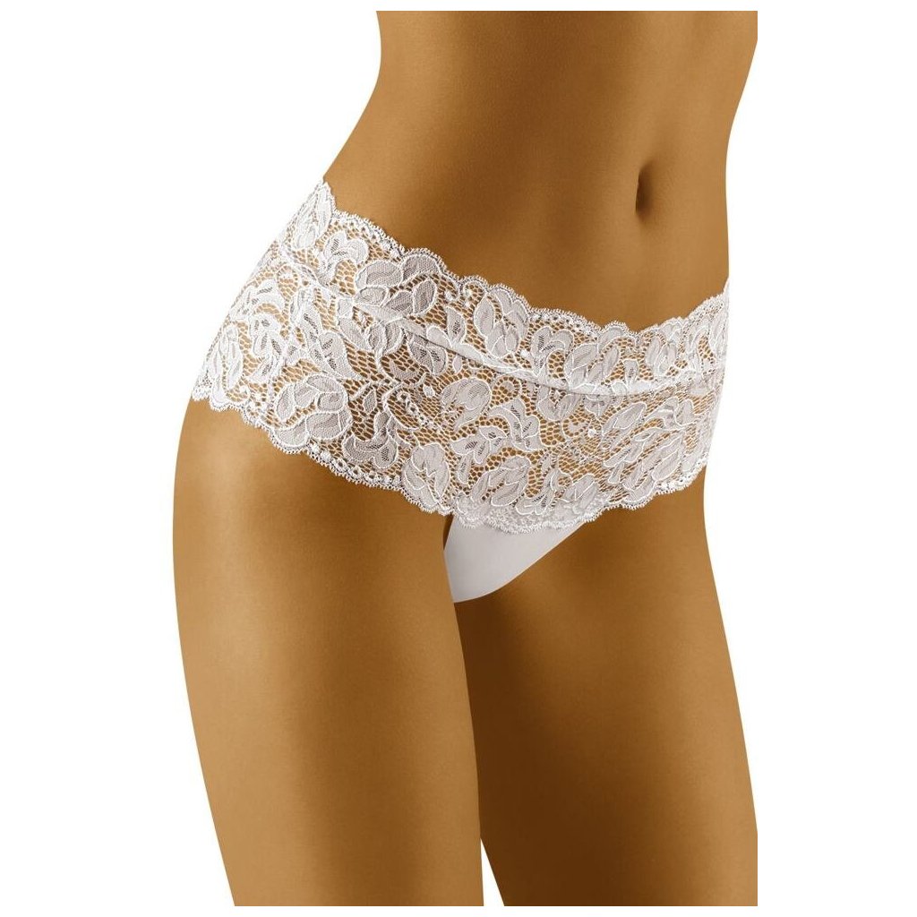 Bílé dámské kalhotky Nova jsou vyrobené z jemné krajky a zezadu decentně vykrojené.Doplňkové parametry