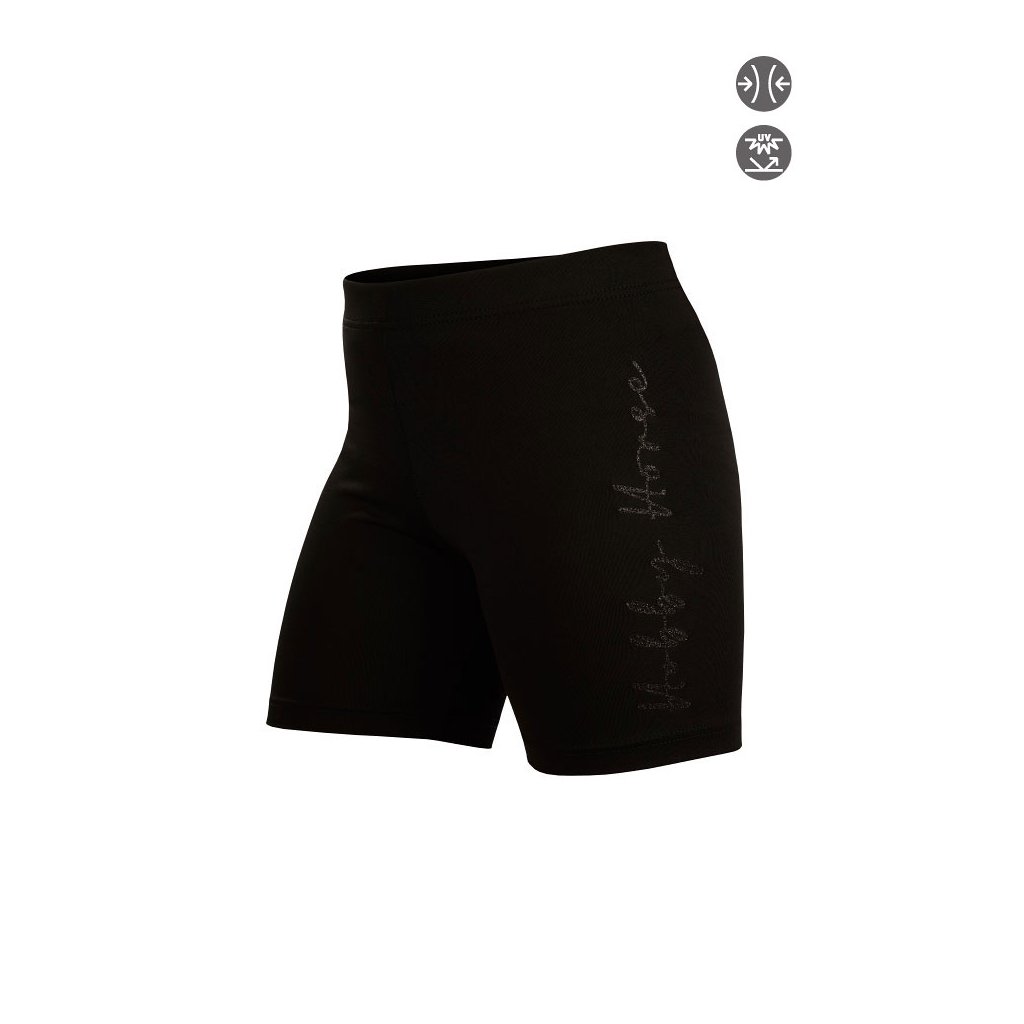 Pohodlný pružný pas s gumou. Ozdobný třpytivý nápis na boku. Materiál je pružný, rychleschnoucí a poskytuje maximální komfort při nošení. Kraťasy pro sport a volný čas. 90% Polyamid + 10% Elastan/ Lycra Sport 901 černá 134, 140, 146Doplňkové parametry