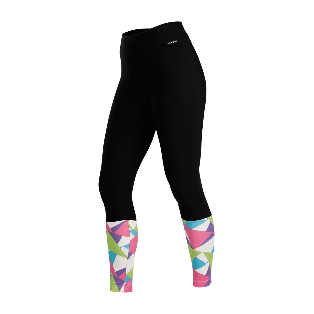V pase pružný pásek. Materiál uvnitř lehce počesaný. Legíny v kombinaci s velmi pružným funkčním materiálem jsou vhodné zejména na sportovní aktivity. Originální vzhled v pestrém tisku osvěží Váš šatník. 100% Polyester/ 80% Polyamid + 20% Elastan/ Lycra Xtra Life tisk + černá S, M, L, XLDoplňkové parametry