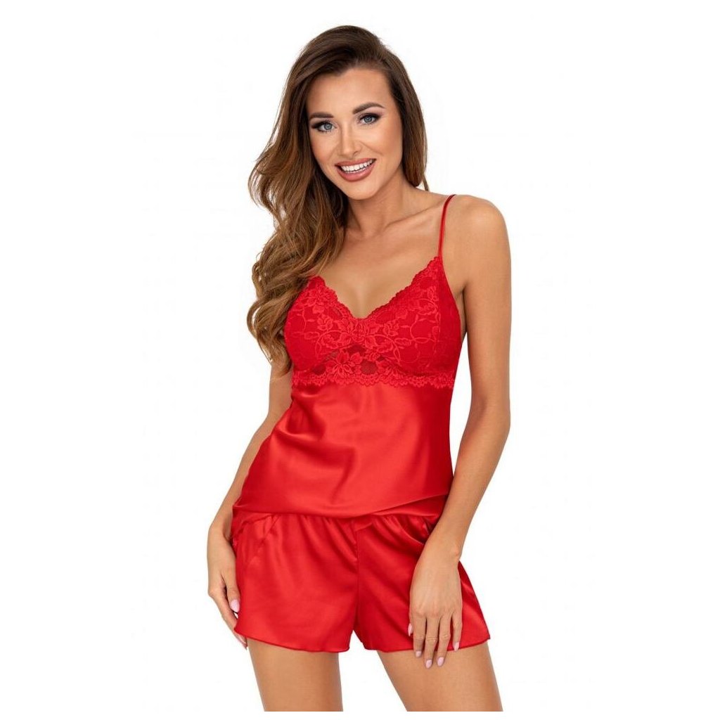 Luxusní saténové pyžamo Colette červené
