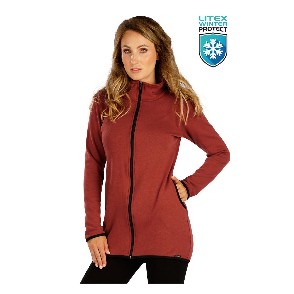 Stoják s příjemným vnitřním počesem. Zapínání na zip. Efektivní pružné černé lemy. Praktické kapsy. Mikinový úplet s vnitřním vyšším počesem je velmi teplý a příjemný na těle. Díky bavlně a elastanu je krásně měkký a pružný. Délka mikiny cca 80 cm. 56% Polyester + 40% Bavlna + 4% Elastan 413 hnědočervená + černá S, M, L, XLDoplňkové parametry