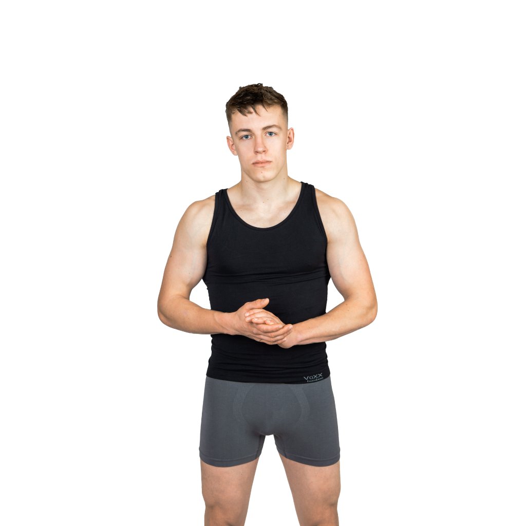 Pánský bezešvý nátělník VoXX® BS-020 z kolekce Bamboo Seamless underwear je příjemný hladký a pohodlný nátělník bez rukávů, se širokými ramínky. Spodní lem je bezešvý. Bambus rychle absorbuje a odvádí vlhkost, je rychleschnoucí. Vlákno bambusové viskózy má dlouho životnost, je hebké a příjemné na omak, odolné proti otěru a je lesklé i po opakovaném praní. Bambusová vlákna jsou přirozeně antibakteriální, a navíc mají antistatické vlastnosti. Ideální pro alergiky, na sport i běžné celodenní nošení.