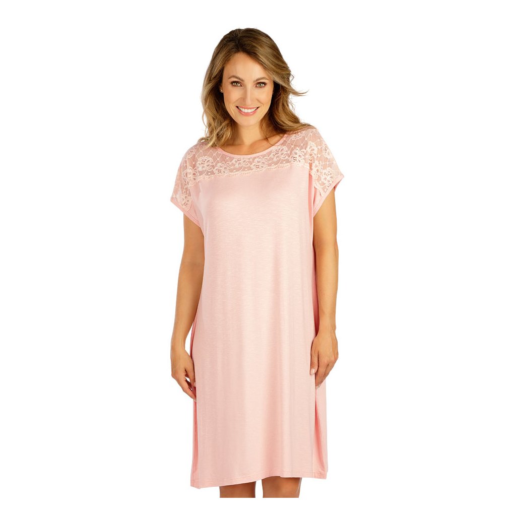 Volný střih s ozdobnou krajkou a kulatým výstřihem. Viskózový úplet je příjemně měkký, pružný a při nošení velice komfortní. Délka košilky cca 95 cm. 95% Viskóza + 5% Elastan/ 88% Polyamid + 12% Elastan 205 meruňková S, M, L, XLDoplňkové parametry