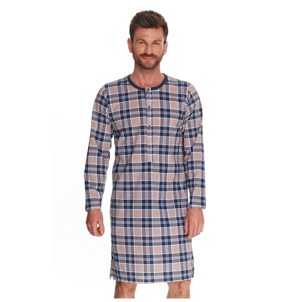 Pánská noční košile je vyrobená z příjemné, prodyšné bavlny, má dlouhý rukáv a oblíbený káro vzor.Doplňkové parametry