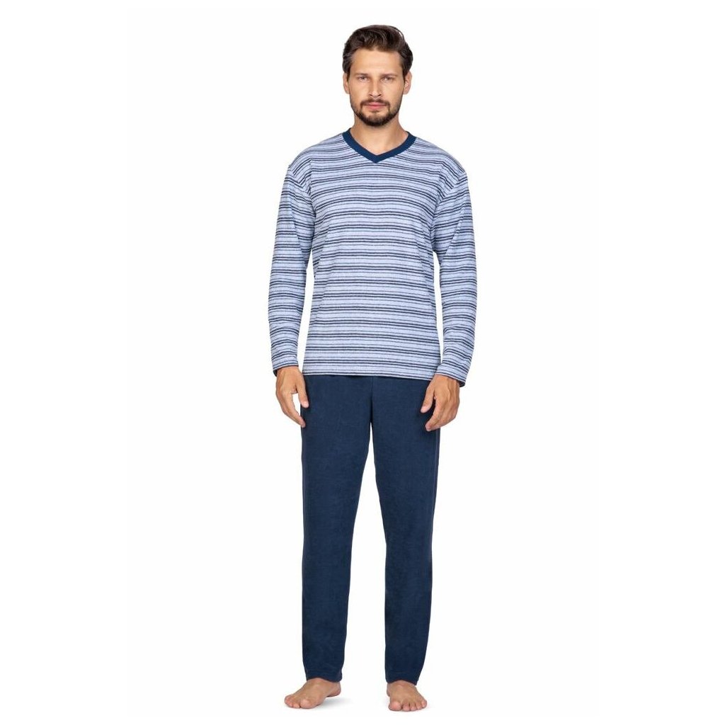 Pohodlné pánské pyžamo je z jemně hřejivého froté materiálu a má trendy proužkovaný vzor.Doplňkové parametry