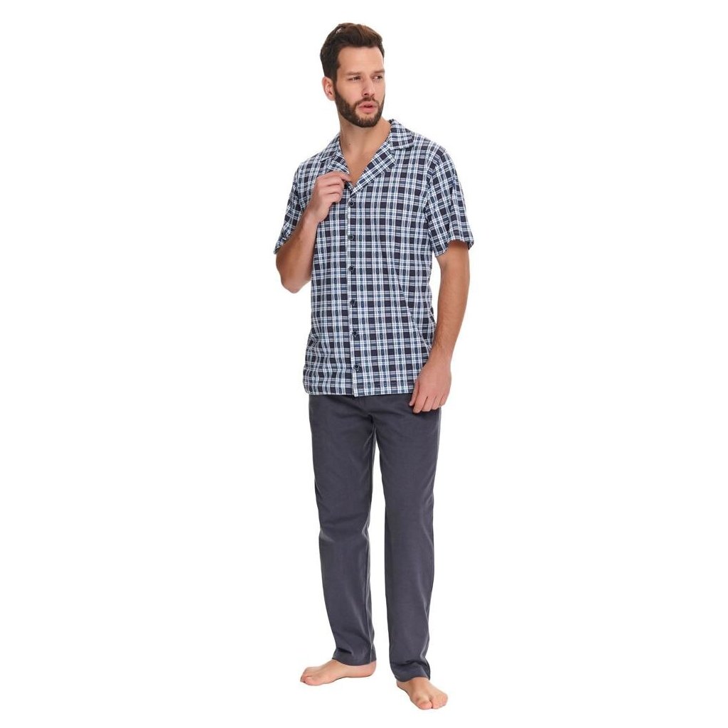 Bavlněné pánské pyžamo s propínacím horním dílem s límečkem.Doplňkové parametry
