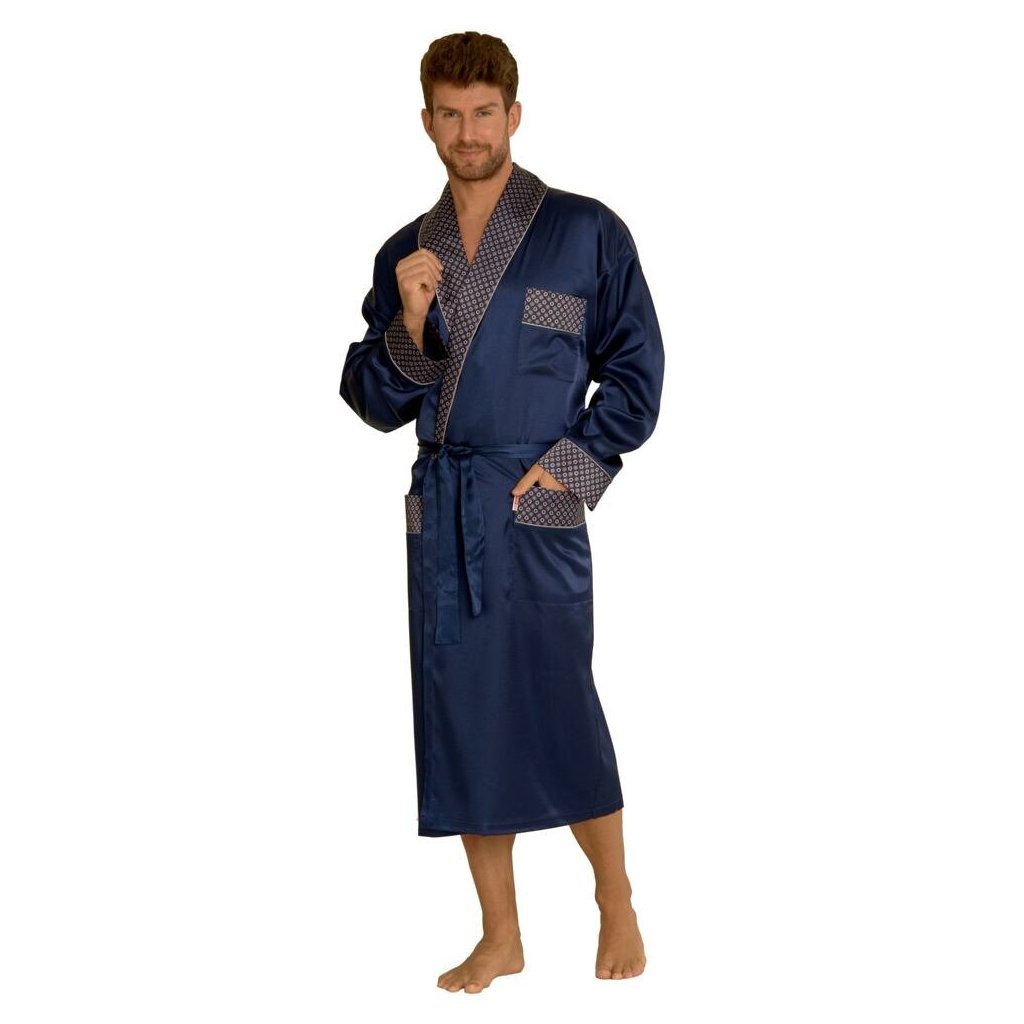 Pánský saténový župan Adam tmavě modrý
