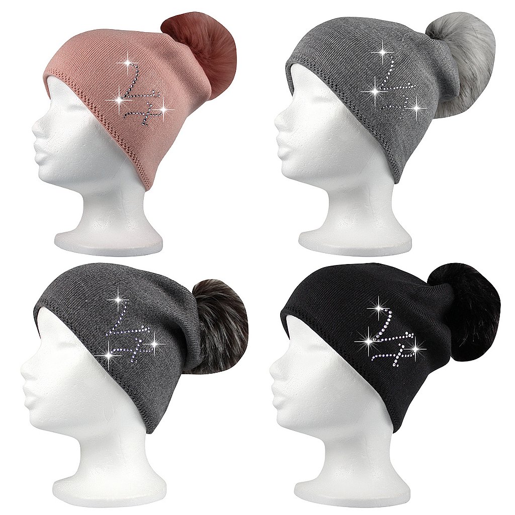 - dámská pletená čepice s bambulí, zdobená kamínky + v kolekci Clio také šála a rukavice!