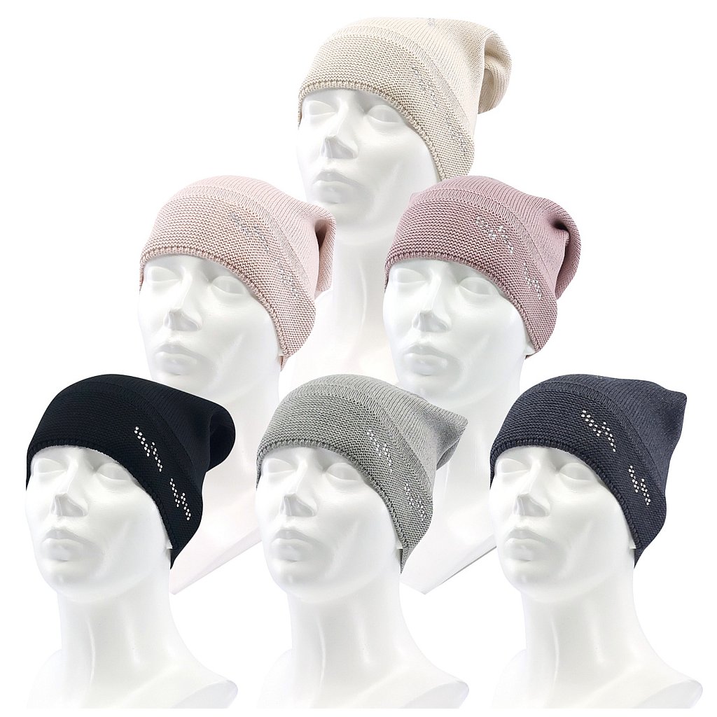 Dámská slabá pletená čepice MICRA z kolekce VoXX® je jednobarevná moderní designová čepice. Pletenina je slabší, s podílem bavlny. Pohodlný vyšší střih se spadlou vrchní částí zdůrazňuje široký zvýrazněný lem. Stylová čepice z hladkého úpletu je zdobená aplikací z kamínků Swarovski.