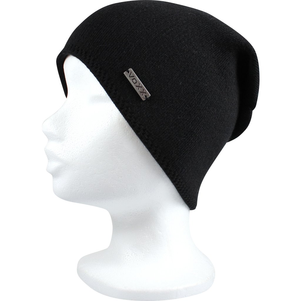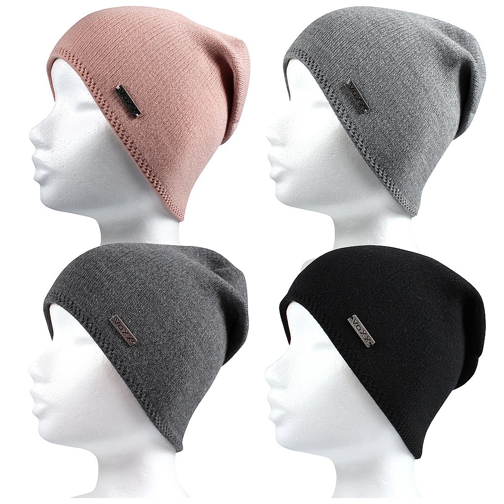 Dámská hladká pletená čepice doplněná aplikací písmen VX z trřpytivých kamínků.