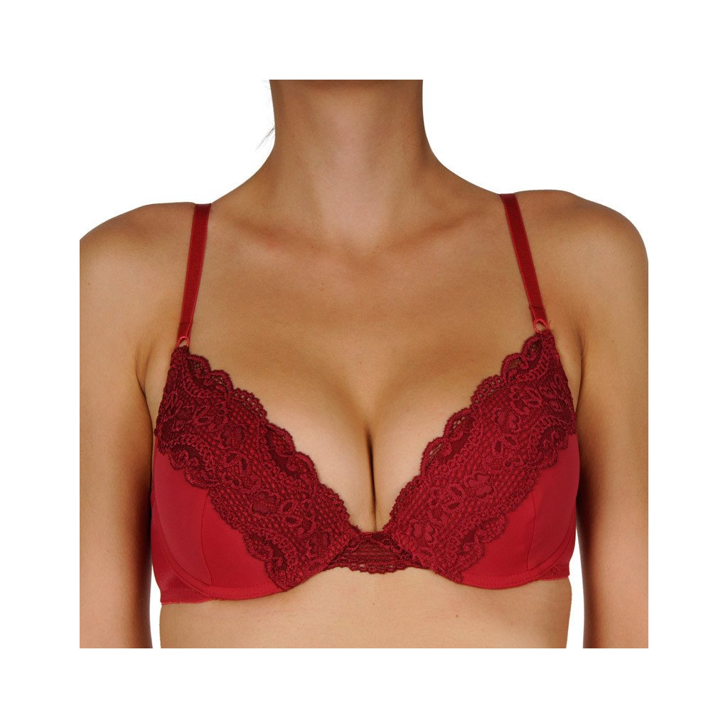 Podprsenka s kosticemi a lisovanými košíčky, dámské šité prádlo. Košíčky jsou ozdobené širokou krajkou. Ramínka jsou nastavitelná. Podprsenka je jednobarevná. Zapínání je třířadé na 2 háčky. Složení: 92% Polyamid 8% Elastan