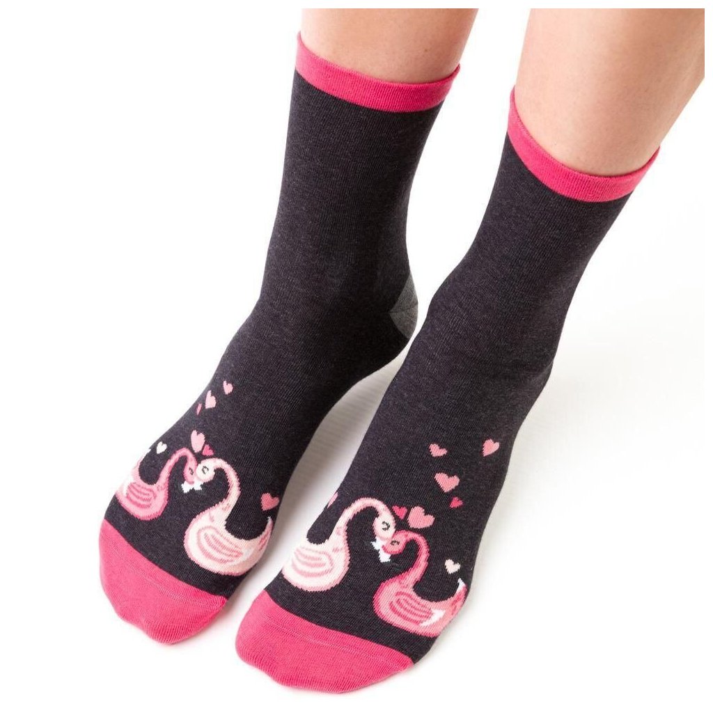 Bavlněné ponožky Labutě jsou ze speciální edice, mají půvabný vzor a šedo-růžovou barvu.