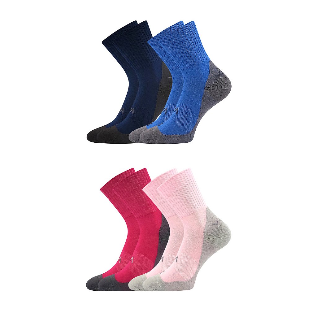 Dětské ponožky BAREFOOTIK FROTÉ jsou pohodlné, slabé ponožky s froté chodidlem ze sportovní kolekce VoXX®. Mají jedinečný ergonomický tvar, který se maximálně přizpůsobí noze. Froté chodidlo je měkké. Široká prstová část a anatomické tvarování na levou a pravou nohu předurčují ponožky pro nošení v barefootové obuvi! Špička ponožky je uzavřena náročnějším řetízkováním, proto je spoj dokonale hladký a nehrozí, že ponožka bude tlačit. Ponožky mají teplotní třídu B, tyto tenké ponožky jsou ideální na nošení po celý den v teplotách od -5°C do +20°C. Díky obrázku na nártu si vaše děti už nespletou, na kterou nohu ponožka patří.