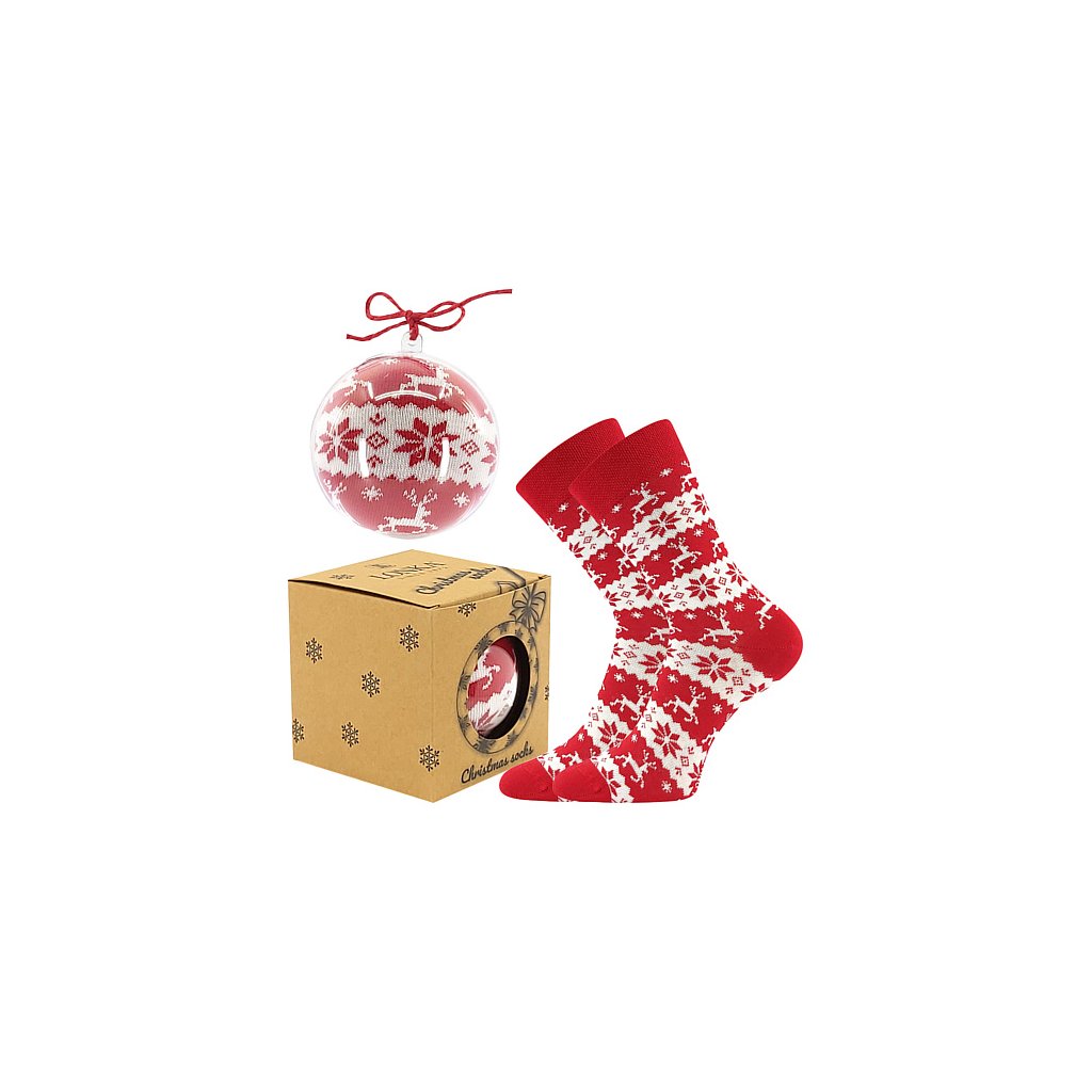 - dětské, dámské a pánské ponožky s vánočním motivem zabalené jako vánoční ozdoba, s jemným a nestahujícím pique lemem, originální dárek pro každéhoDoplňkové parametry