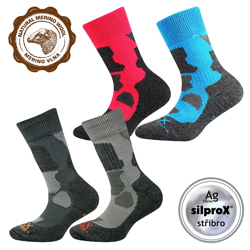 - dětské froté ponožky, polstrované zóny proti otlakům a puchýřům, jemný svěr lemu, vysoká prodyšnost, antibakteriální ochrana materiálu silproX s ionty stříbra, maximální tepelný comfort díky merino vlně CLIMAYARN, teplotní třída: CDoplňkové parametry