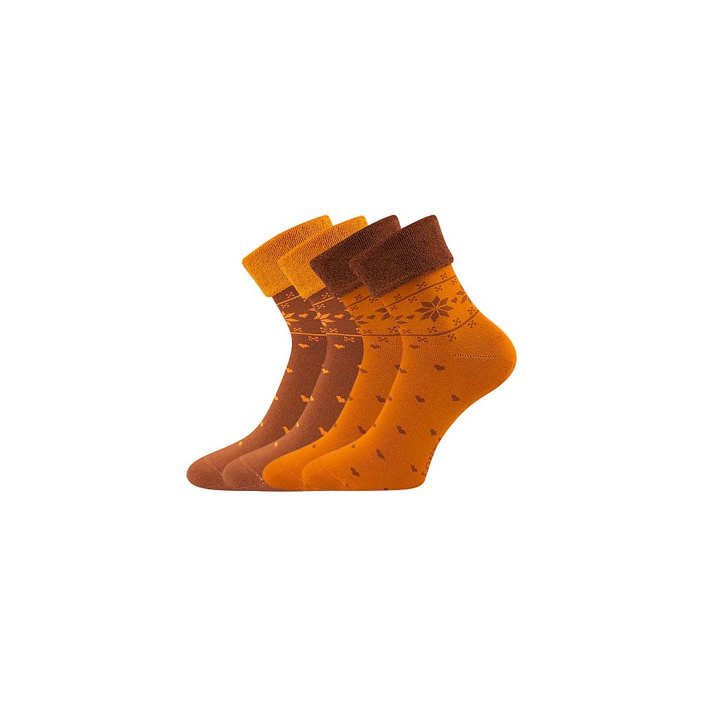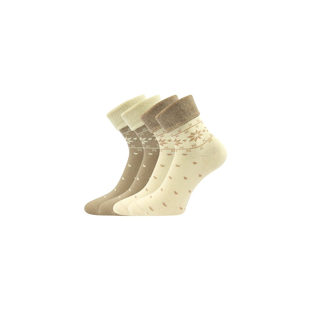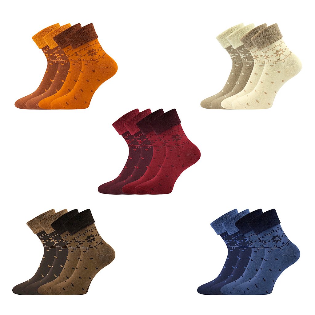- dámské teplé froté ponožky s ohrnovacím lemem, norský vzor, jemně šitá špice