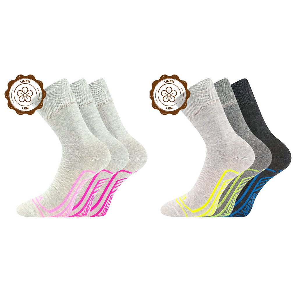 Dětské ponožky Lonka® LINEMULIK. Slabé odolné ponožky z chladivého lnu, bavlny a elastanu nesundáte z nohy. Lněné ponožky jsou vysoce prodyšné, řetízkovaná špice nikde netlačí a zajišťuje pohodlí a komfort při nošení, jemný lem nohu nestahuje a elastická zóna po obvodu nártu zabraňuje přetáčení ponožky v obuvi. Teplotní třída ponožek je A - od +10°C do +35°C.