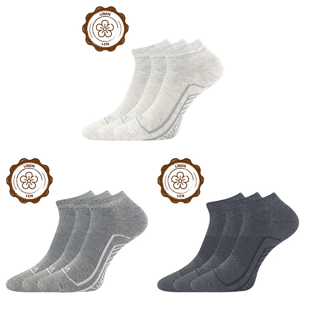 Tenké ponožky VoXX® LINEMUS v krátké výšce pod kotník budete nosit po celé léto. Unisex odolné ponožky z chladivého lnu, bavlny a elastanu nesundáte z nohy. Lněné ponožky jsou vysoce prodyšné, řetízkovaná špice nikde netlačí a zajišťuje pohodlí a komfort při nošení, jemný lem nohu nestahuje a elastická zóna po obvodu nártu zabraňuje přetáčení ponožky v obuvi. Slabé ponožky mají teplotní třídu A - od +10°C do +35°C.