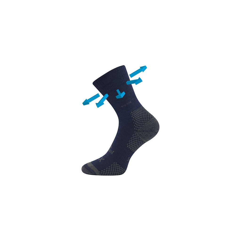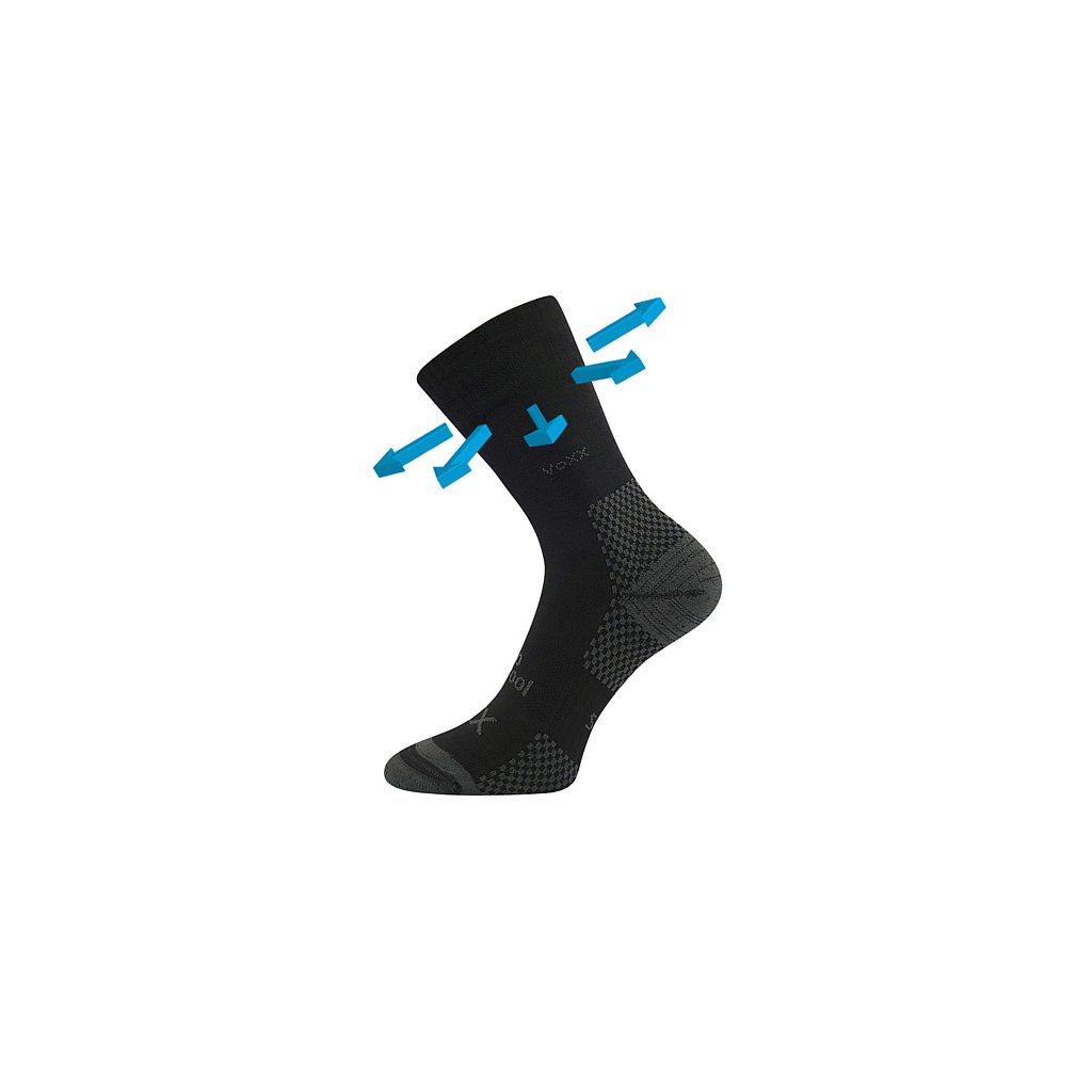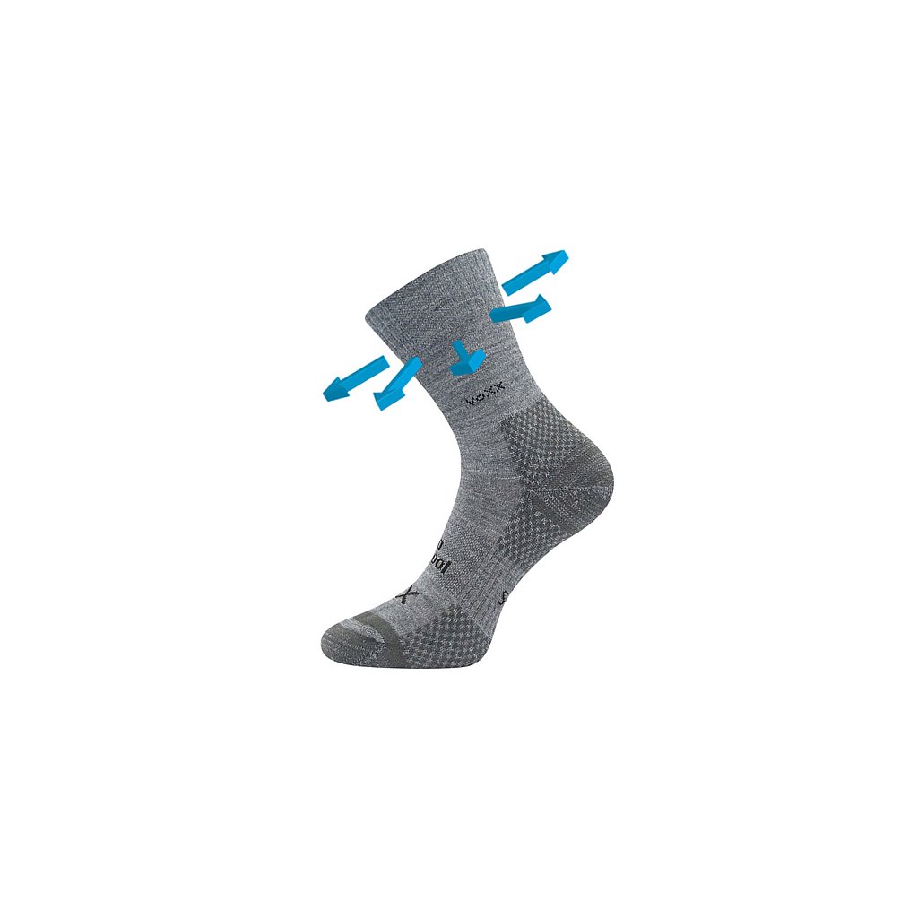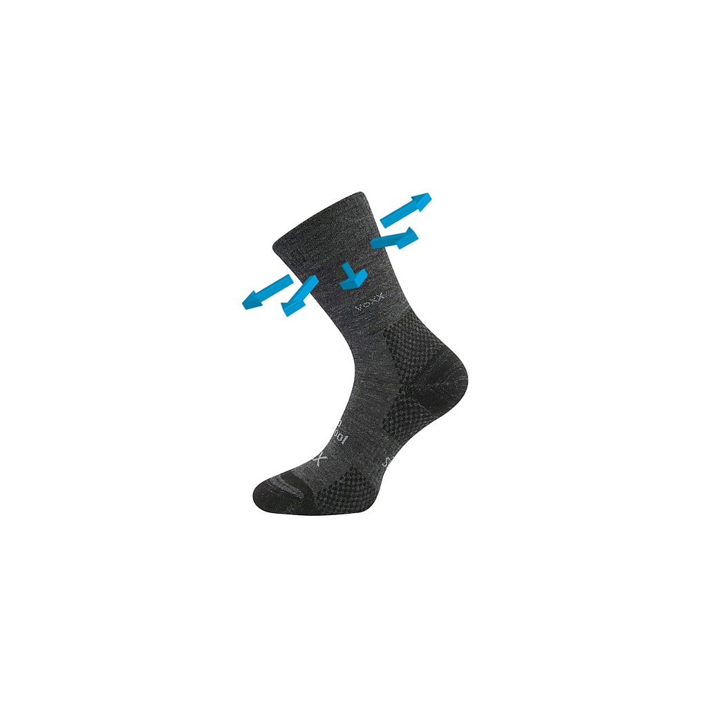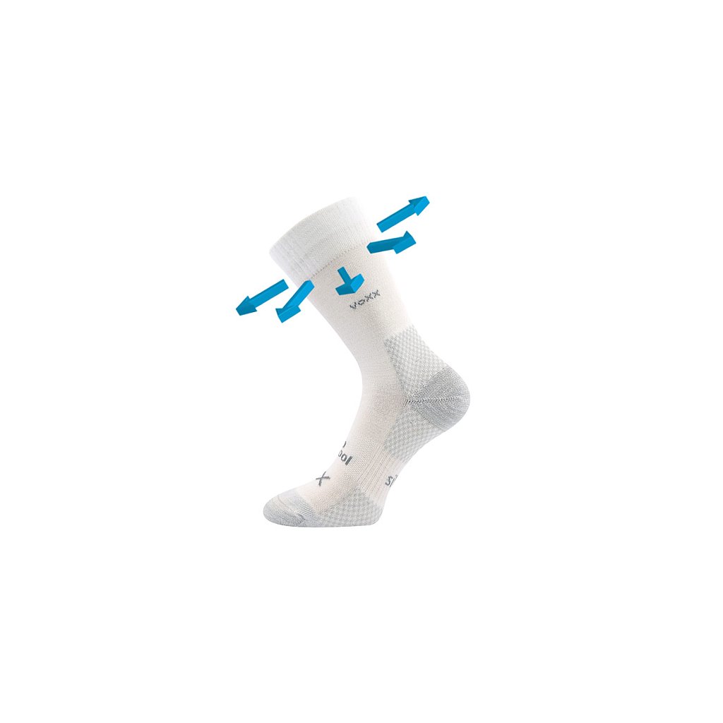 Sportovní vlněné ponožky VoXX® MENKAR z merino vlny můžete nosit po celý den. Tyto unisex ponožky mají speciální jemný nestahující lem s polstrovaným froté chodidlem a řetízkovanou špicí, udrží tak vaše nohy ve formě při jakémkoliv sportu. Žádný zápach nepřichází v úvahu díky antibakteriální ochraně ionty stříbra v materiálu silproX®. V teplotní třídě C do -20°C vám zima určitě nebude.