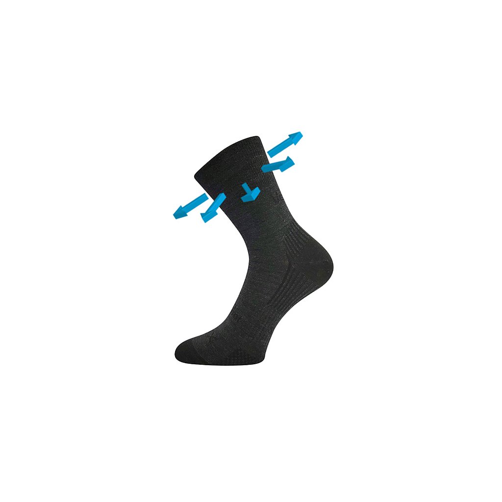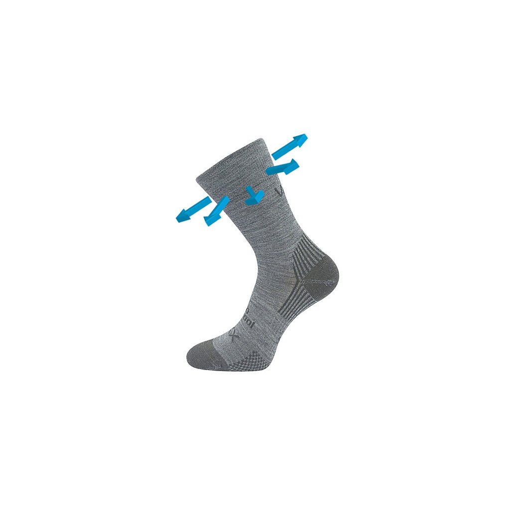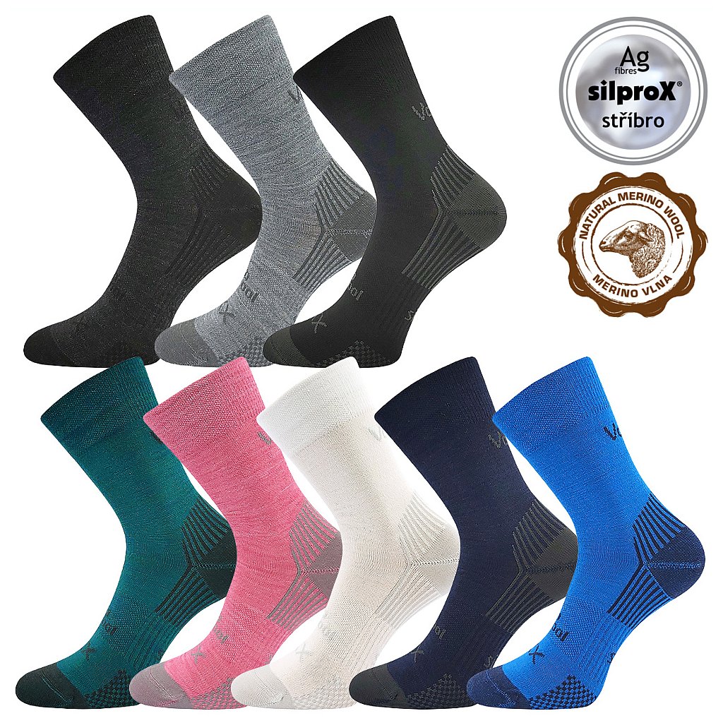 materiály: | vlna Merino - extra jemná ovčí vlna, jemný až hedvábný omak, termoregulační schopnosti, elastické, prodyšné, antibakteriální účinky, silproX® - speciálně vypředené polypropylenové vlákno s obsahem iontů stříbra, zabraňující vzniku zápachu a plísním |