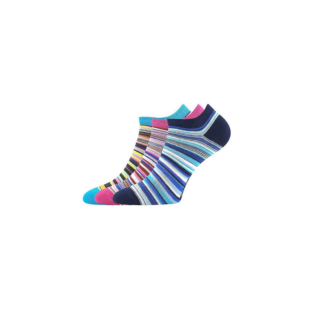 Dámské krátké ponožky Boma® PIKI 75 jsou barevné letní ponožky z přírodní bavlny doplněné o pružný elastan. Jsou příjemné na nošení a výborně sedí na noze. Výhodné balení tenkých proužkovaných slabých ponožek obsahuje 3 páry.