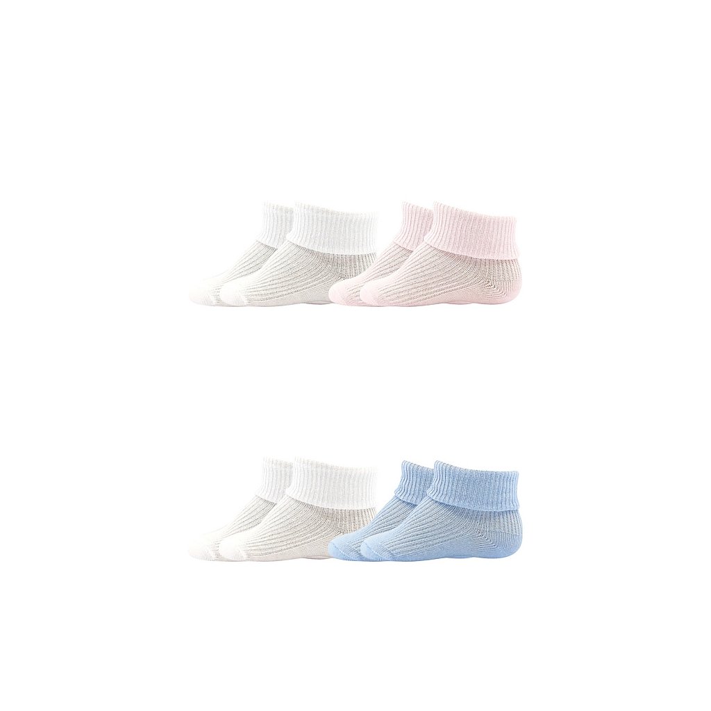 Kojenecké ponožky Boma® RAFA jsou slabé bavlněné ponožky z žebrovaného úpletu. Bavlna je přírodní materiál, citlivý k pokožce, dobře pohlcuje vlhkost. Jednobarevné ponožky lze nosit ozdobně ohrnuté nebo úplně natažené. Protože jsou ponožky vyšší, miminku nebudou klouzat z nožičky dolů. Nabízíme ve výhodné sadě 2 párů, v kombinaci s bílou barvou je další v modré a růžové.