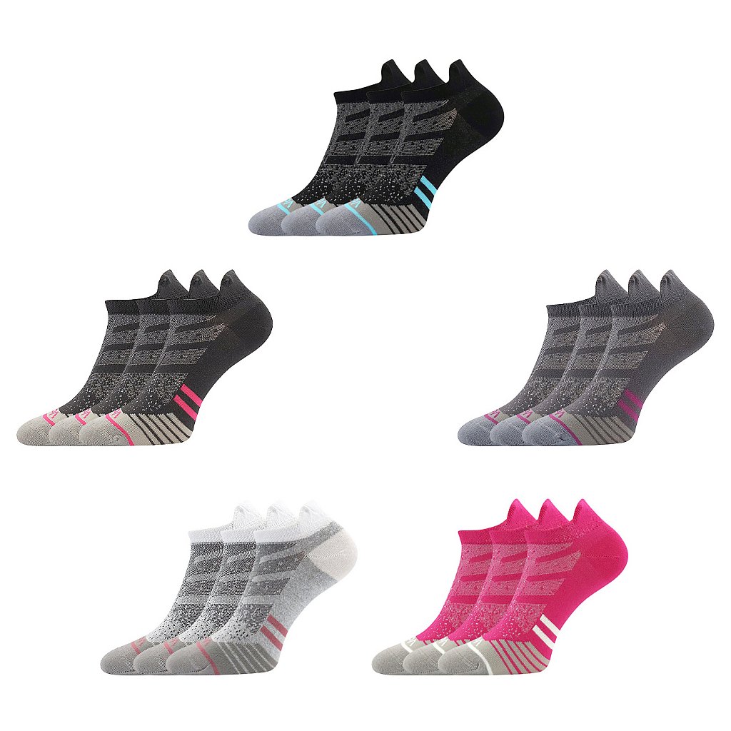 Dámské nízké tenké ponožky VoXX® REX 17 jsou sportovní ponožky, které se hodí jak na celodenní nošení, tak i na letní indoorové a outdoorové aktivity. Slabé ponožky s vyšším podílem bavlny pro dobrý odvod vlhkosti mají navíc prodyšnou zónu na nártu a jemný nestahující lem. Aby se v obuvi nepřetáčely, okolo nártu mají elastickou zónu, držící ponožky na svém místě. Slabé ponožky mají špici uzavřenou řetízkováním, takže nikde netlačí. Ponožky jsou dostupné v teplotní třídě A, vhodné do rozmezí teplot od +10°C do +35°C.