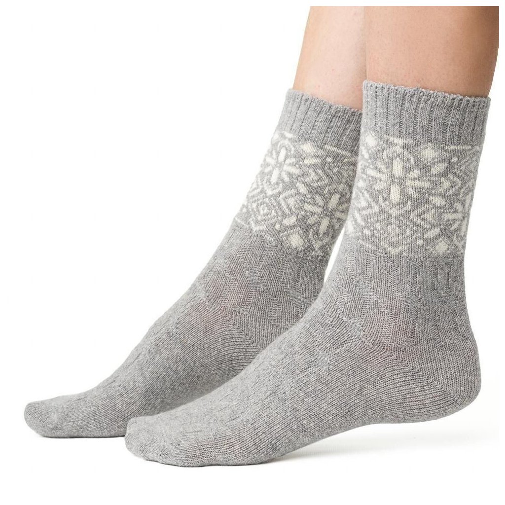 Ponožky s vlnou 093 norský vzor světle šedé